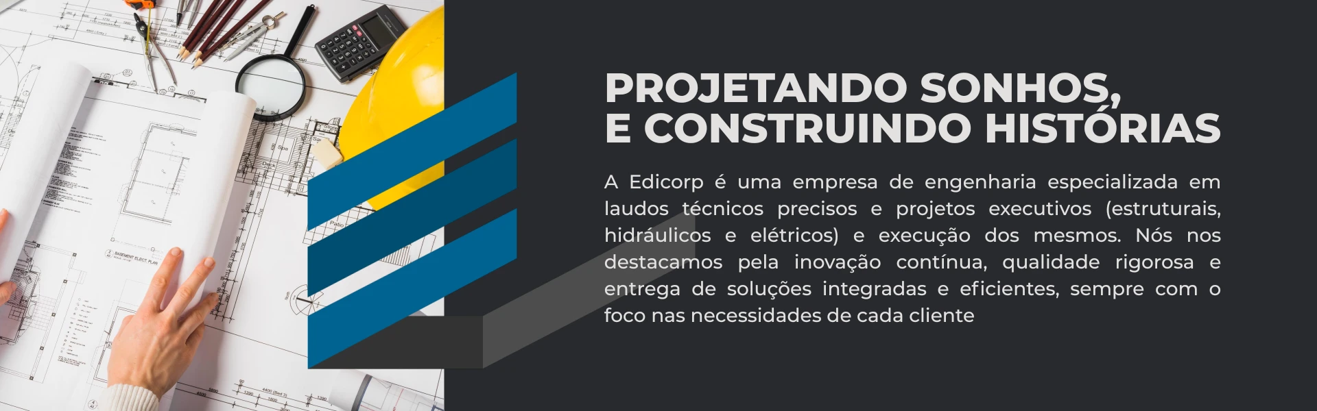 Chegamos a 11 de janeiro de 2024. Este não foi apenas um dia no calendário; foi o ápice de um legado de sucesso e o despertar de uma ambição ainda maior. A vontade de ir além, de nos destacarmos no segmento de projetos executivos, nos impulsionou a uma reestruturação profunda. E assim, com um planejamento meticuloso de cada detalhe, nasceu a Edicorp Engenharia. Mais do que um novo nome, é um novo ciclo que reflete nossa essência, nossos valores e nossa paixão inabalável por um futuro mais inovador e moderno.
